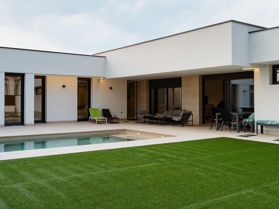 En este solar hemos construido esta casa de arquitectura moderna, pero con guiños a la tradición de la zona.